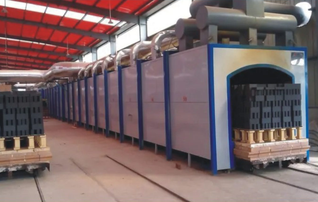 隧道窯在青磚青瓦行業(yè)中廣泛應(yīng)用,除了高效節(jié)能、自動化度高等連續(xù)窯的特點,同時因為窯車裝載方式可以多層裝載,適用產(chǎn)品范圍較廣,合適的燒成周期,尤其適用于青磚厚重類制品。區(qū)別于傳統(tǒng)磚瓦隧道窯,現(xiàn)代隧道窯主要組成:窯體、窯車(窯具)、燃燒系統(tǒng)、排煙系統(tǒng)、冷卻系統(tǒng)、測控系統(tǒng)和附屬設(shè)備。