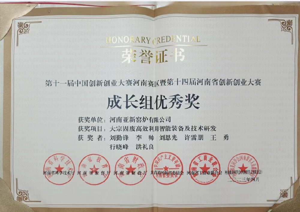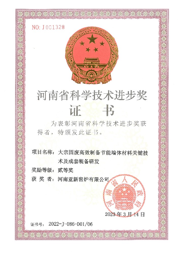 河南亞新窯爐有限公司是國家高新技術(shù)企業(yè)、河南省專精特新企業(yè)、河南省綠色技術(shù)創(chuàng)新示范企業(yè)、 中國磚瓦協(xié)會副會長單位、全國墻材科技信息網(wǎng)副理事長單位、河南省節(jié)能環(huán)保隧道窯工程技術(shù)研究中心、《河南省節(jié)能低碳與環(huán)境污染防治技術(shù)指導(dǎo)目錄》企業(yè)、河南省綠色技術(shù)創(chuàng)新示范企業(yè),具有窯爐設(shè)計和冶金工程施工總承包(窯爐施工)資質(zhì),是專業(yè)從事各類固廢處置與資源化綜合利用智能裝備制造的創(chuàng)新科技型企業(yè)。亞新窯爐在墻材行業(yè)率先通過質(zhì)量、環(huán)境、職業(yè)健康安全管理體系三個認證:2017年編寫制定了《移動式節(jié)能隧道窯》企業(yè)標(biāo)準(zhǔn),2018年參與《墻材工業(yè)用移動式隧道窯》行業(yè)標(biāo)準(zhǔn)的起草與制定,參與國家質(zhì)量監(jiān)督檢驗檢疫總局和國家標(biāo)準(zhǔn)化管理委員會《磚瓦工業(yè)隧道窯熱平衡、熱效率測定與計算方法》國家標(biāo)準(zhǔn)的制定,2019 年推出《大斷面多拼式節(jié)能隧道案》,在墻體材料燒結(jié)方面進行了顛覆性創(chuàng)新:2020年主持制定了河南省《多拼式大斷面節(jié)能隧道案技術(shù)標(biāo)準(zhǔn)》第一條地方標(biāo)準(zhǔn), 2022年,亞新公司作為第一牽頭人研發(fā)的《大宗固廢高效制備節(jié)能墻體材料關(guān)鍵技術(shù)及成套裝備研發(fā)》科技成果獲得河南省科學(xué)技術(shù)進步獎二等獎:2023年亞新公司獲得河南省綠色創(chuàng)新企業(yè)。